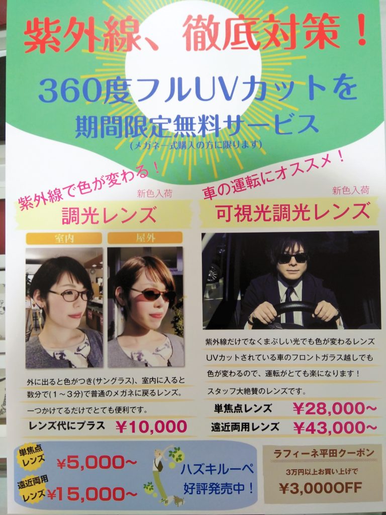 今回は先日行われた調光レンズフェアでお作りいただいた