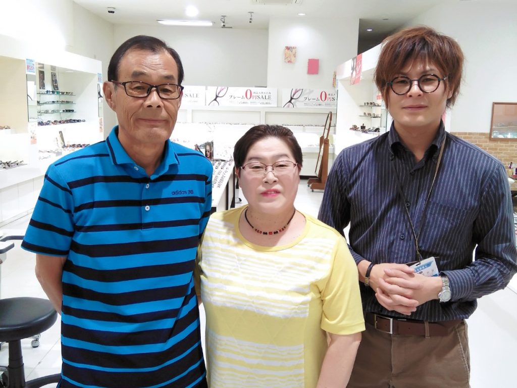 三人で写っている写真の奥様はグレーに色が変わるレンズで、