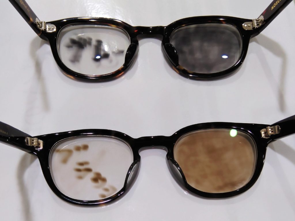 一般的に調光レンズというと、紫外線で色が変わりますので