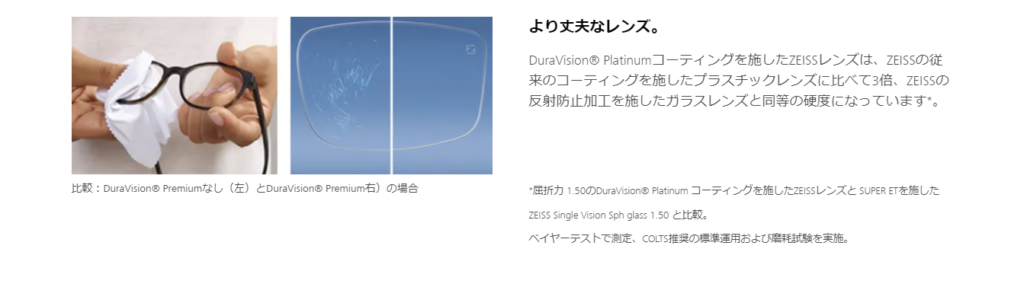 DuraVisionPlatinumはZEISS史上最もキズに強い超撥水防汚コートです。