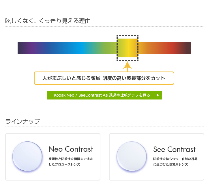 つまり、短波長(青色光)を効果的にカットしつつ、中間波長(緑、黄色