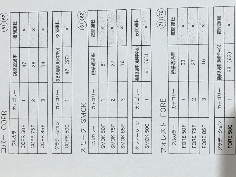 カラーの種類によっては、濃度25%でも夜間運転不適合になってしまうので