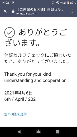 入館前に体調チェックがありました(‘_’)