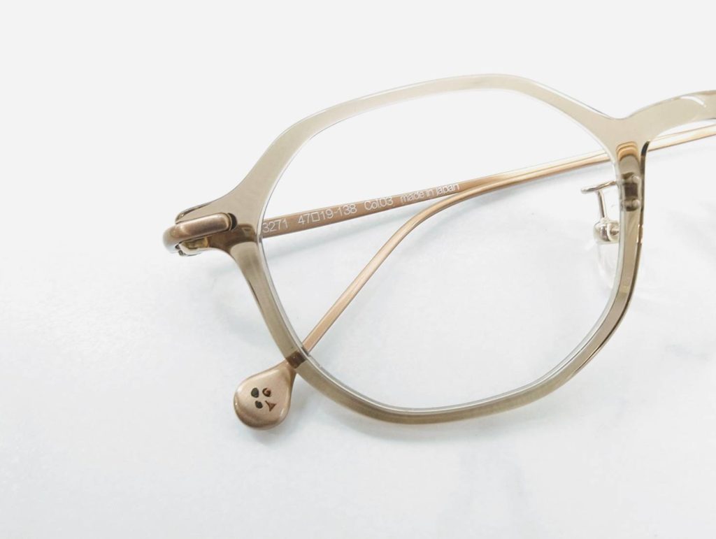 左テンプルエンドの内側に金のクローバーの刻印、外側には三日月🌒の飾りが(”Д”) こういうちょっとした可愛さが良いですよね~🎶